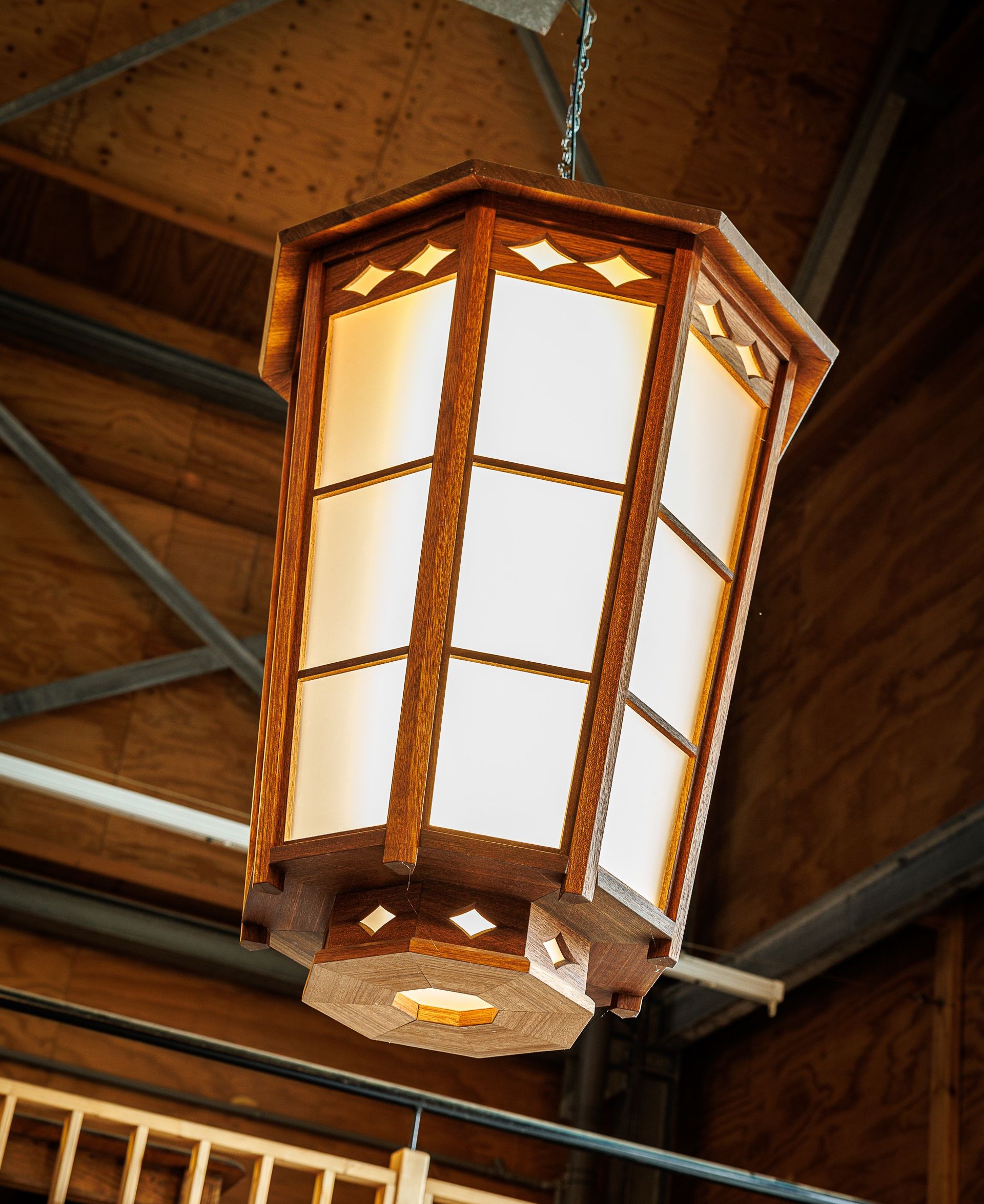 Achthoekige lantaarn naar eigen ontwerp gemaakt. 70 cm breed en 100 cm hoog.