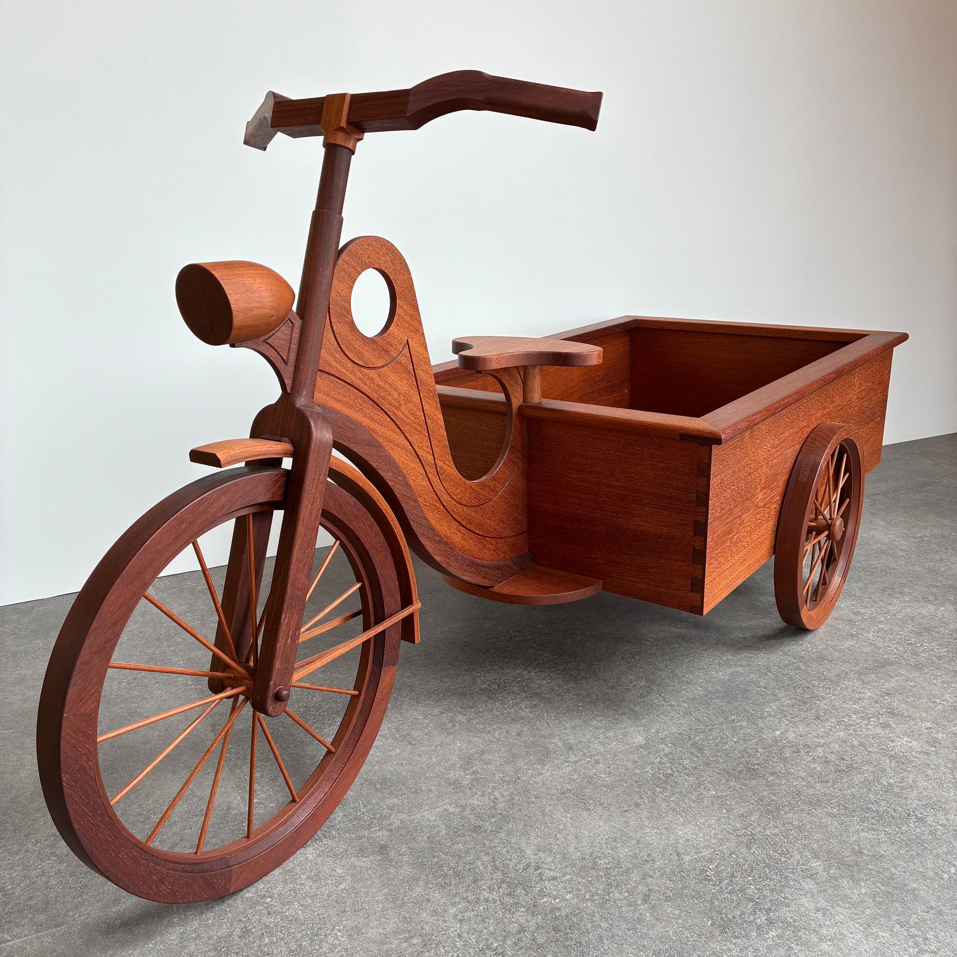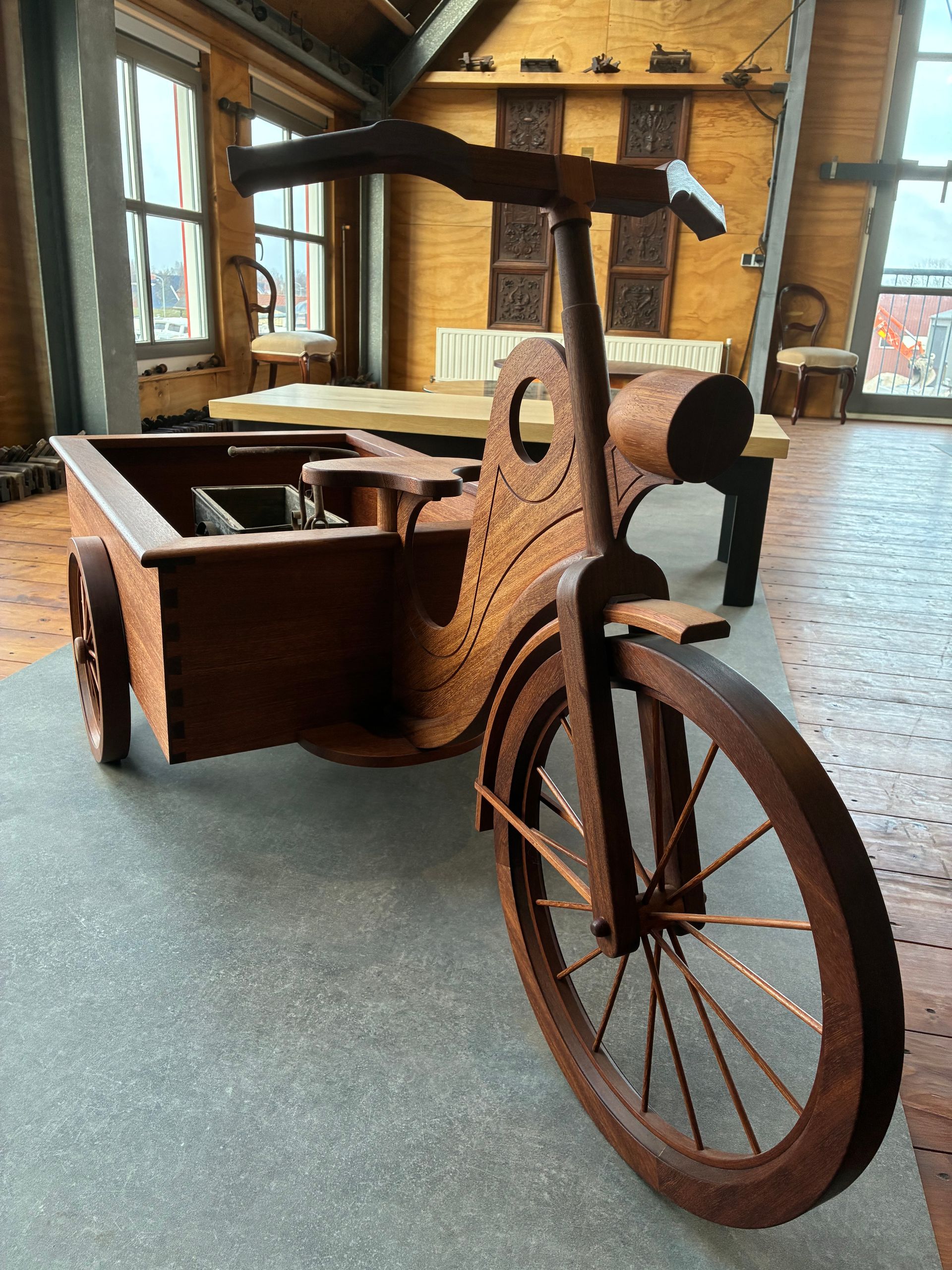 Bakfiets naar eigen ontwerp gemaakt van Afzelia. Het idee voor deze bakfiets komt van de driewieler op de tweede foto.