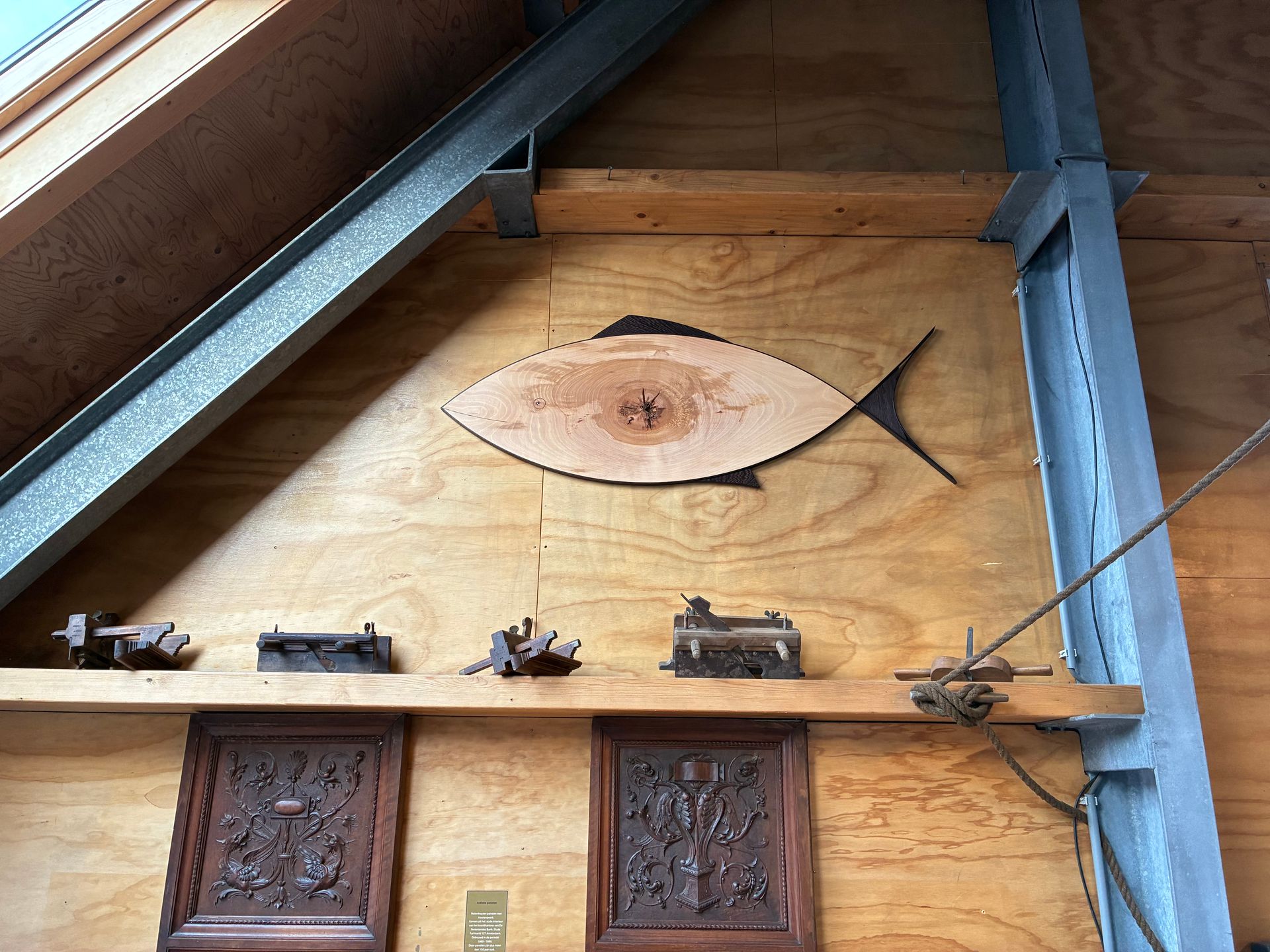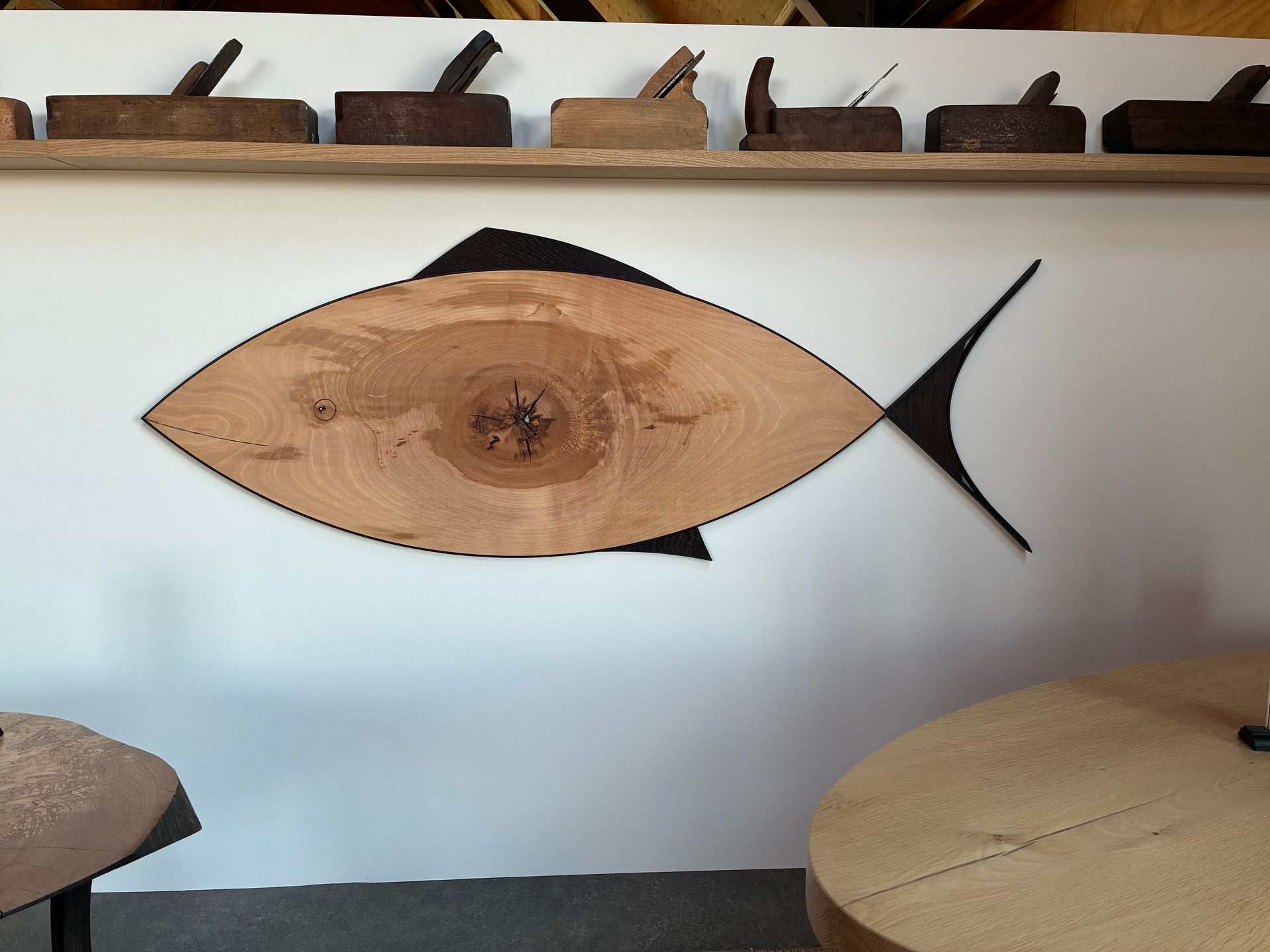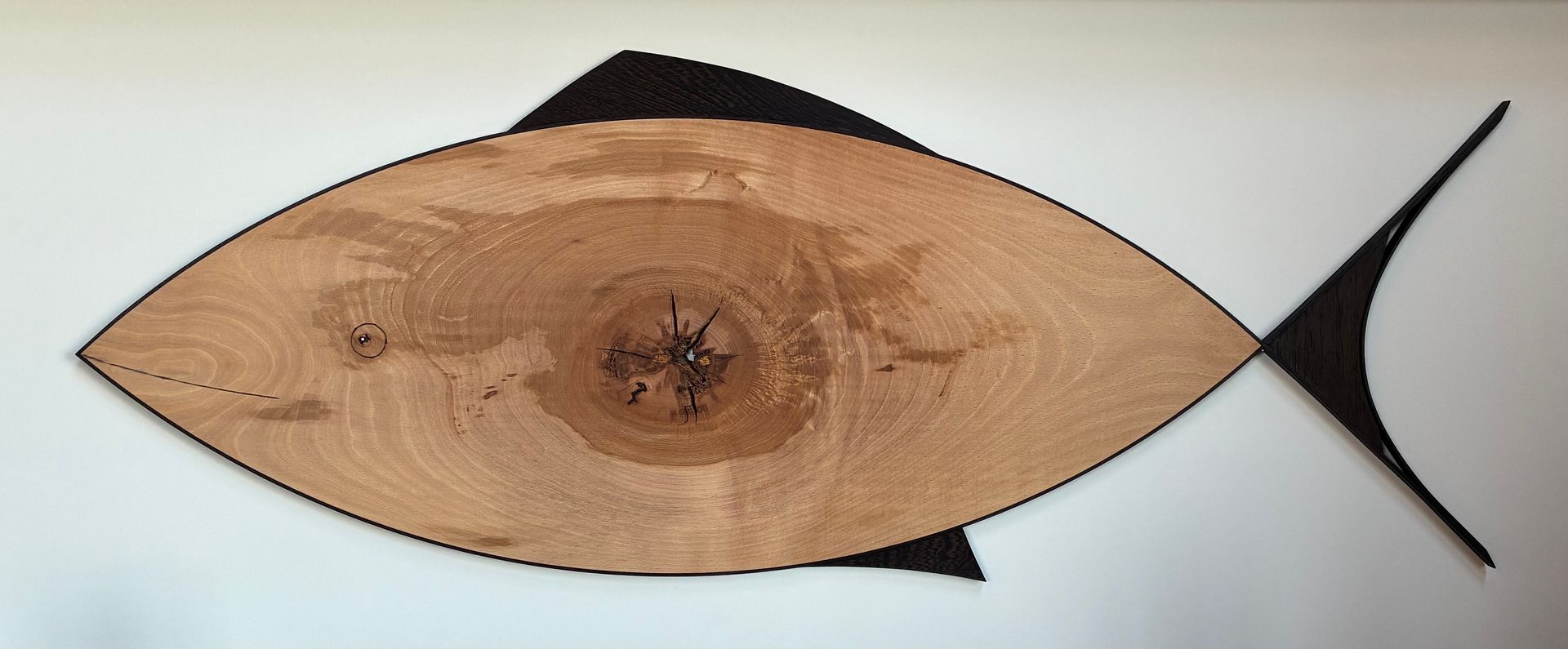 Vis gemaakt van een stuk beuken met vinnen van wengé.