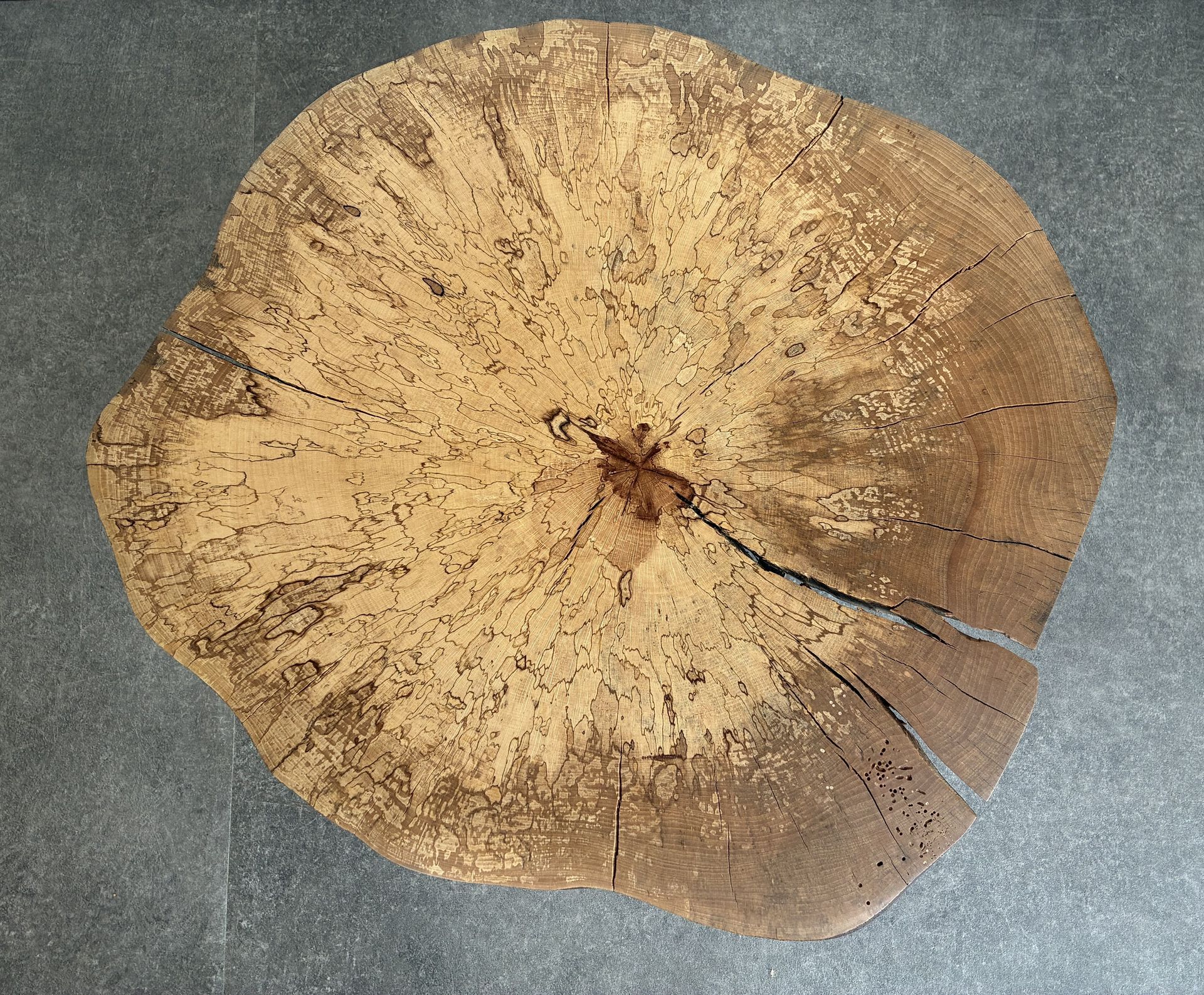 Slaap is het resultaat van de invloed van schimmels op het hout, waardoor deze prachtige tekening in het hout is ontstaan.